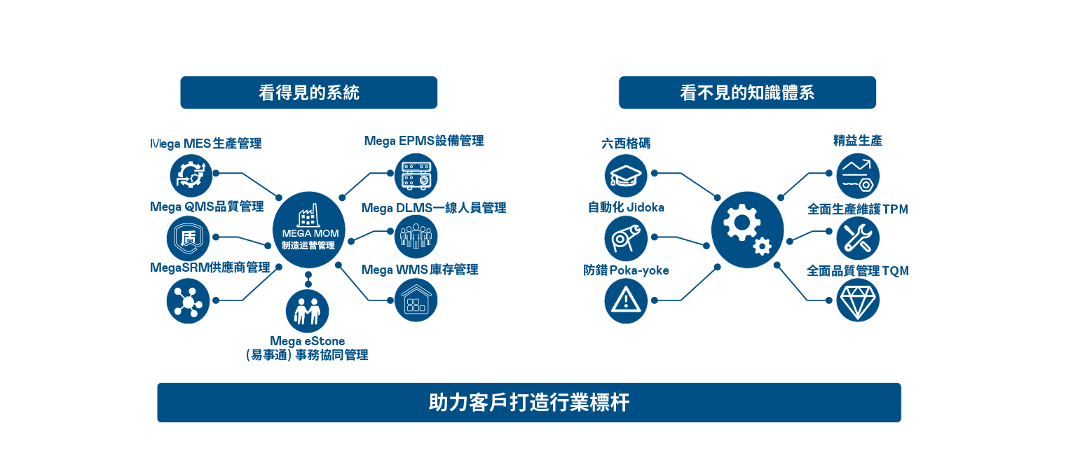 基於自有工廠26年的實踐經驗,通過信息化系統結合科技專家、顧問專家的經驗傳承輔導,助力客戶達成目標,降低時間與試錯成本,創造最佳業績!